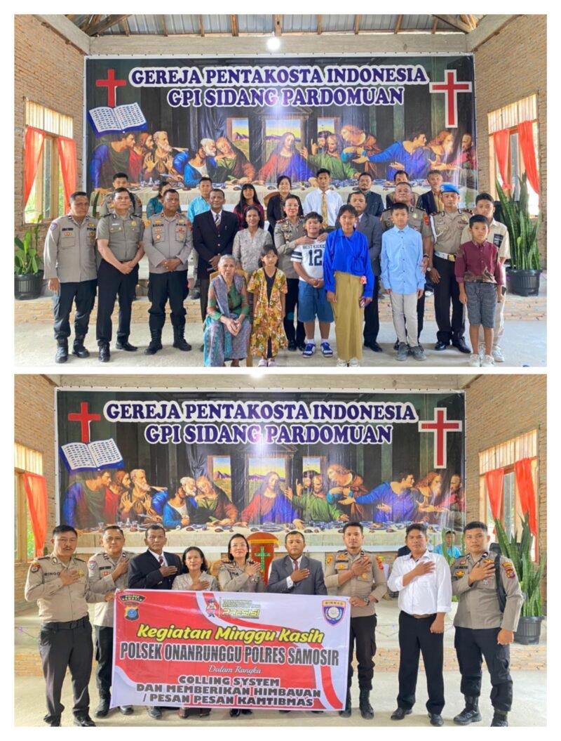 SAMOSIR – SUMUT, MBS – Dalam upaya mempererat hubungan antara Polri dan masyarakat hingga ke pelosok desa, Polres Samosir melaksanakan kegiatan Minggu Kasih bersama puluhan jemaat di GPI Sidang Pardomuan Rianiate, Kecamatan Onanrunggu, Minggu (22/02/2026).