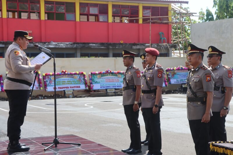 Selayar-Mitramabes.com||Upacara Serah Terima Jabatan (Sertijab) sejumlah pejabat utama di lingkungan Polres Kepulauan Selayar digelar di Lapangan Apel Mapolres pada Sabtu siang, 29 November 2025. Kegiatan yang dilaksanakan berdasarkan Surat Telegram Kapolda Sulsel Nomor STR/482/XI/KEP./2025 tanggal 7 November 2025 itu dipimpin langsung Kapolres Kepulauan Selayar, AKBP Didid Imawan, S.H., S.I.K., M.Tr.Mil.