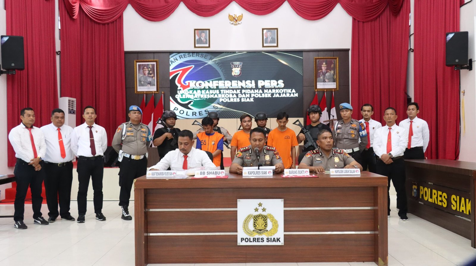 Konferensi pers tersebut dihadiri Kapolres Siak AKBP. Sepuh Ade Irsyam Siregar, S.H., S.I.K., M.H., Kasat Resnarkoba Polres Siak AKP Benny Afriandi Siregar, S.H., M.H., bersama jajaran dan Kapolsek Lubuk Dalam, IPTU. Marhengky S.Sos., M.H., serta, Pengungkapan ini sekaligus menandai keberhasilan jajaran Satres Narkoba dan Polsek dalam mengungkap kasus narkotika secara beruntun hanya dalam hitungan hari.