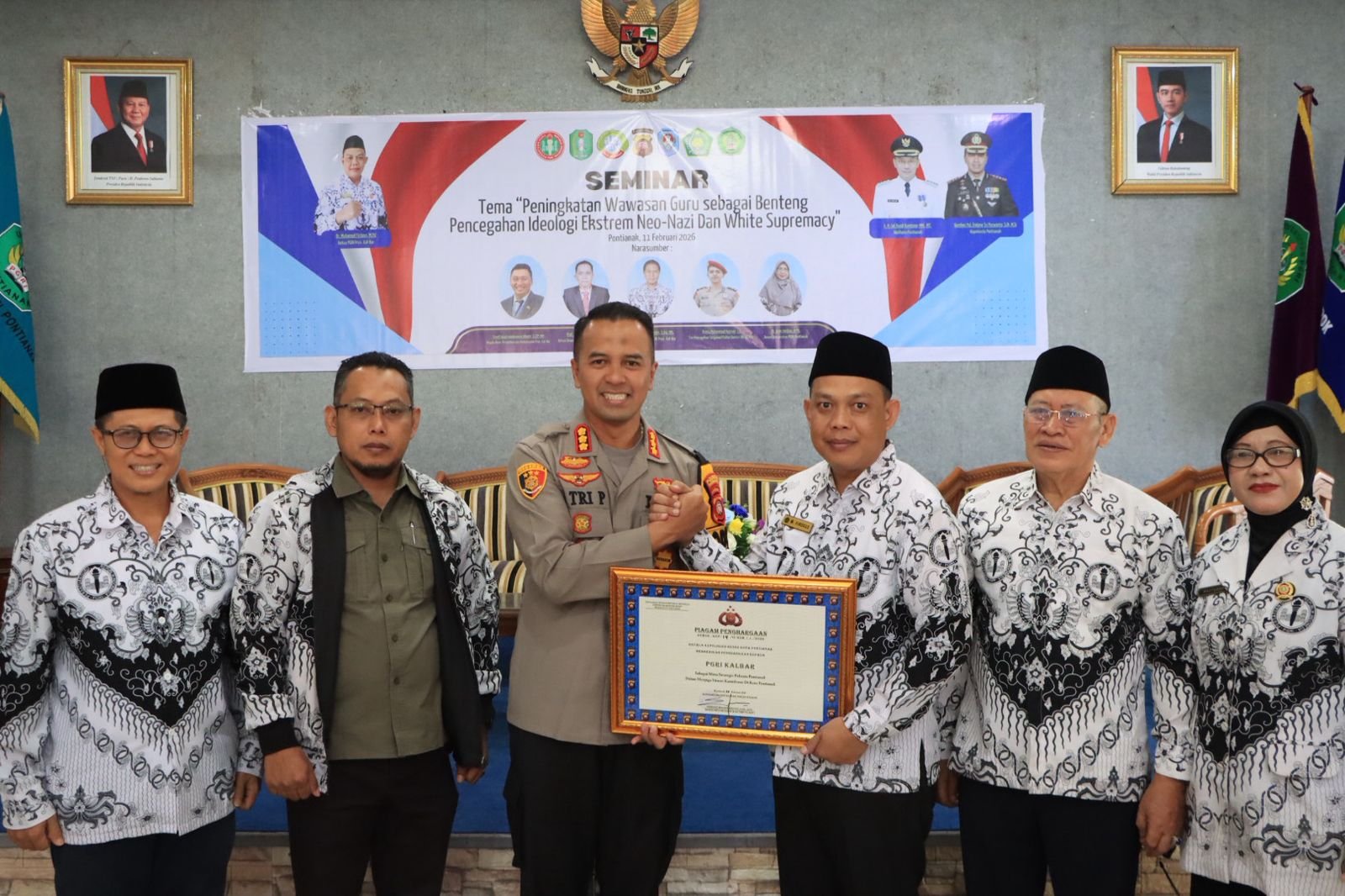 Sebagai bentuk apresiasi atas peran dan dukungan dunia pendidikan dalam upaya pencegahan paham radikal dan ekstrem, pada kesempatan tersebut Kapolresta Pontianak turut menyerahkan piagam penghargaan kepada PGRI Kota Pontianak. Pemberian piagam ini diharapkan dapat memperkuat sinergi antara kepolisian dan insan pendidikan dalam menjaga generasi muda dari pengaruh ideologi yang bertentangan dengan nilai Pancasila.