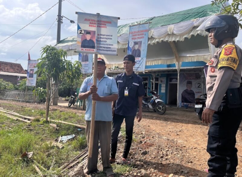 Indramayu, Mitramabes.com – Polsek Kandanghaur Polres Indramayu Polda Jabar melaksanakan pengamanan penertiban Alat Peraga Kampanye (APK) Calon Kuwu di wilayah Kecamatan Kandanghaur, Minggu (7/12/2025).