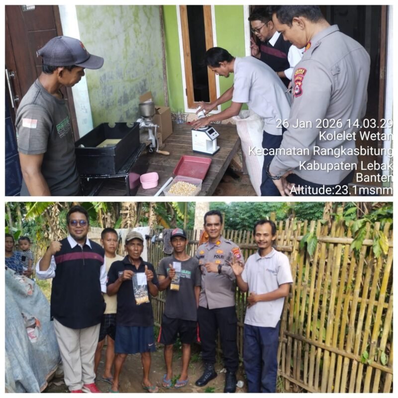 LEBAK Banten mitramabes.com-Kapolsek Rangkssbitung Polres Lebak AKP Adi Irawan,.SH dan Bhabinkamtibmas BRIPKA Wahyu Triono melaksanakan pendampingan kegiatan Tim Bulog Lebak dalam pengecekan kualitas hasil panen jagung milik petani di Kampung Kosa,Desa Kolelet Wetan,Kecamatan Rangkasbitung,Kabupaten Lebak.Senin 26 Januari 2026,pukul.14.30 Wib.