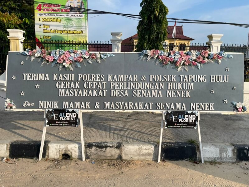 KAMPAR, MBS. Kepercayaan publik tak selalu disampaikan lewat pidato resmi. Di Tapung Hulu, Kabupaten Kampar, rasa aman dan keadilan justru “berbicara” lewat deretan karangan bunga yang terpajang di depan Mapolres Kampar.