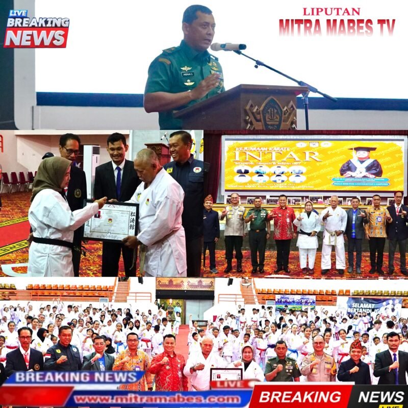 Lampung Mitra Mabes.Com – Kasdam XXI/Radin Inten, Brigjen TNI Andrian Susanto, S.I.P., M.Han., M.I.Pol., menghadiri pembukaan kejuaraan Karate INTAR tingkat Nasional, Kejuaraan yang di ikuti 1.107 orang peserta dari berbagai daerah di Indonesia, bertempat di GSG Unila Jl. Prof. Dr. Ir. Sumantri Brojonegoro Bandar Lampung. Kamis (27/11/2025)