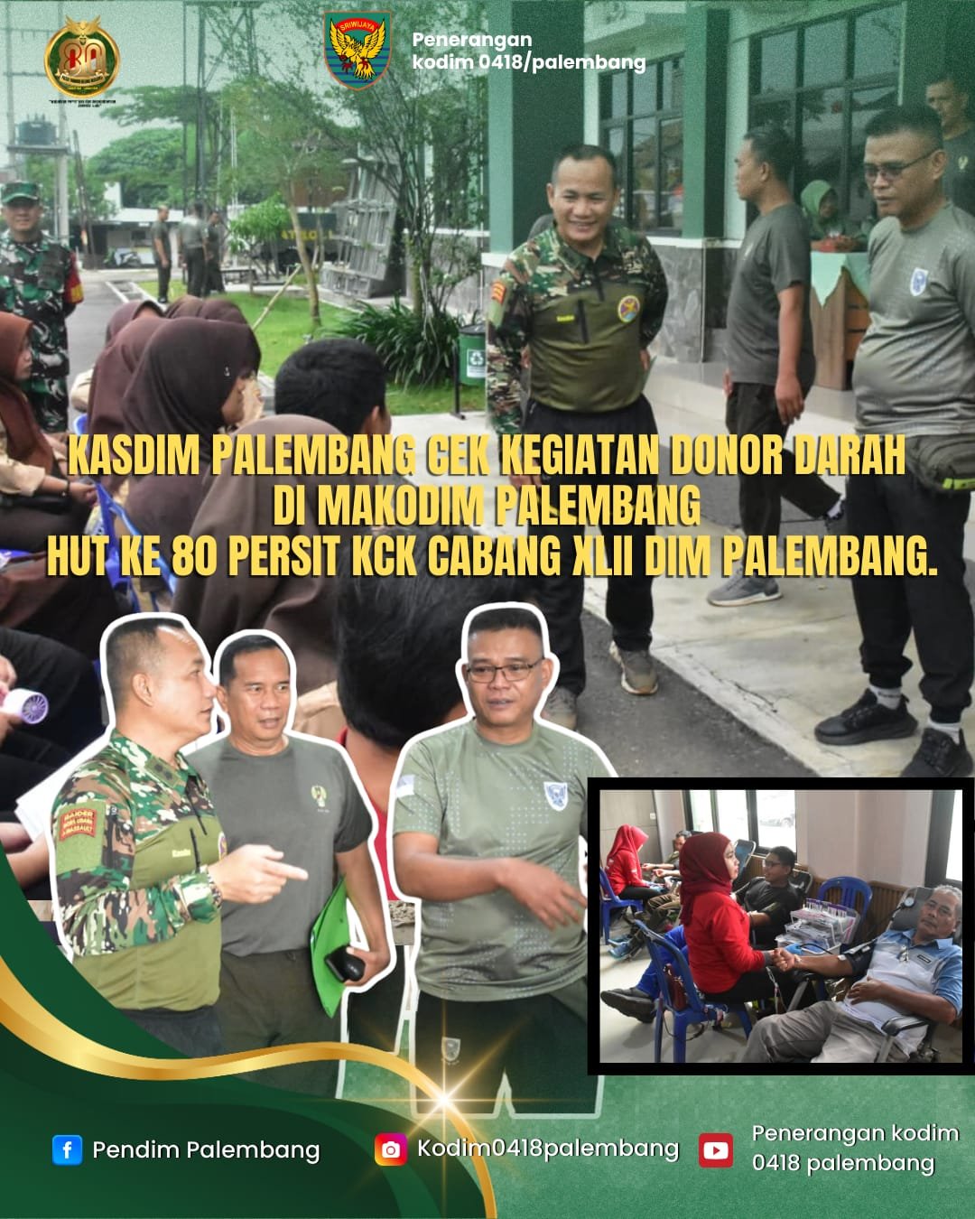 Dandim 0418/Palembang Letkol Arh Erik Novianto, S.Sos melalui Kasdim menyampaikan bahwa kegiatan donor darah ini menjadi salah satu bentuk kepedulian sosial serta kontribusi nyata TNI dalam membantu masyarakat yang membutuhkan bantuan darah.