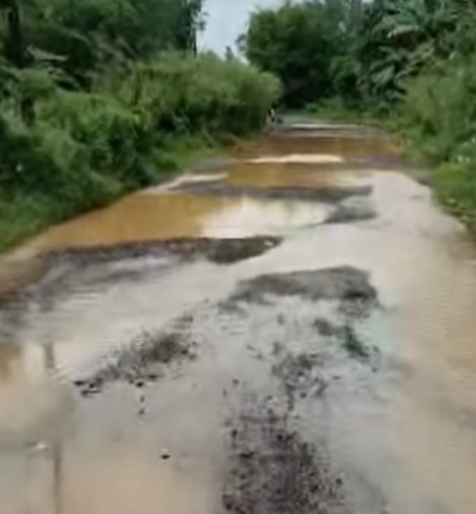 Pantauan awak media di lapangan, Minggu (21/12/2025), kondisi jalan tampak dipenuhi genangan air bercampur lumpur. Lubang-lubang jalan yang tertutup air sulit dikenali, sehingga kerap membahayakan pengendara roda dua maupun roda empat. Tak jarang kendaraan mogok atau terperosok saat mencoba melintas.
