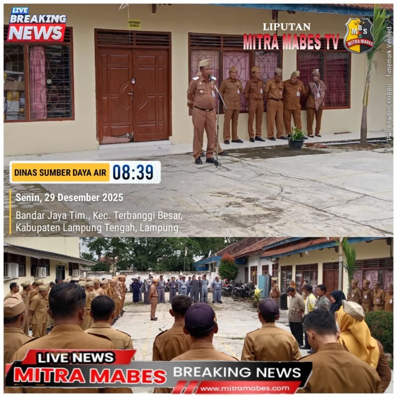 LAMPUNG TENGAH MITRA MABES.COM – Kepala Dinas Sumber Daya Air (SDA) Kabupaten Lampung Tengah, Sulaeman ST. MM, memimpin apel akhir tahun 2025.Apel berlangsung di lingkungan Dinas Sumber Daya Air Kabupaten Lampung Tengah.