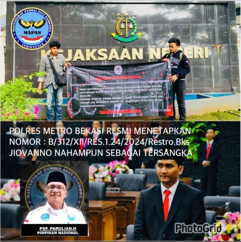 BEKASI || MBS — Ketua Umum Masyarakat Peduli Anti Narkoba (MAPAN), Rully Huthaean, menyampaikan apresiasi keras sekaligus dukungan penuh atas langkah Kesatuan Mahasiswa Bekasi (AKMI) yang menekan Kejaksaan Negeri Kabupaten Bekasi untuk mempercepat P21 dan segera melakukan penahanan terhadap tersangka kasus dugaan ancaman, Jiovanno Nahampun, anggota DPRD Kabupaten Bekasi, 14/11/2025.
