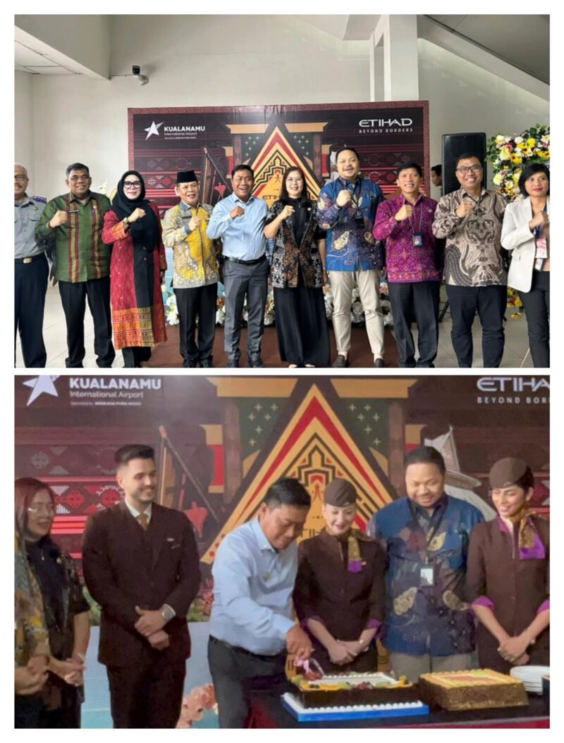 Akses penerbangan langsung ke Abu Dhabi ini ditandai dengan Inaugural Flight Ceremony Etihad Airways (EY) Penerbangan Perdana Maskapai Etihad Airways (EY) Rute Abu Dhabi – Kualanamu (AUH-KNO) di Bandara Internasional Kualanamu, Jumat (3/10/2025).