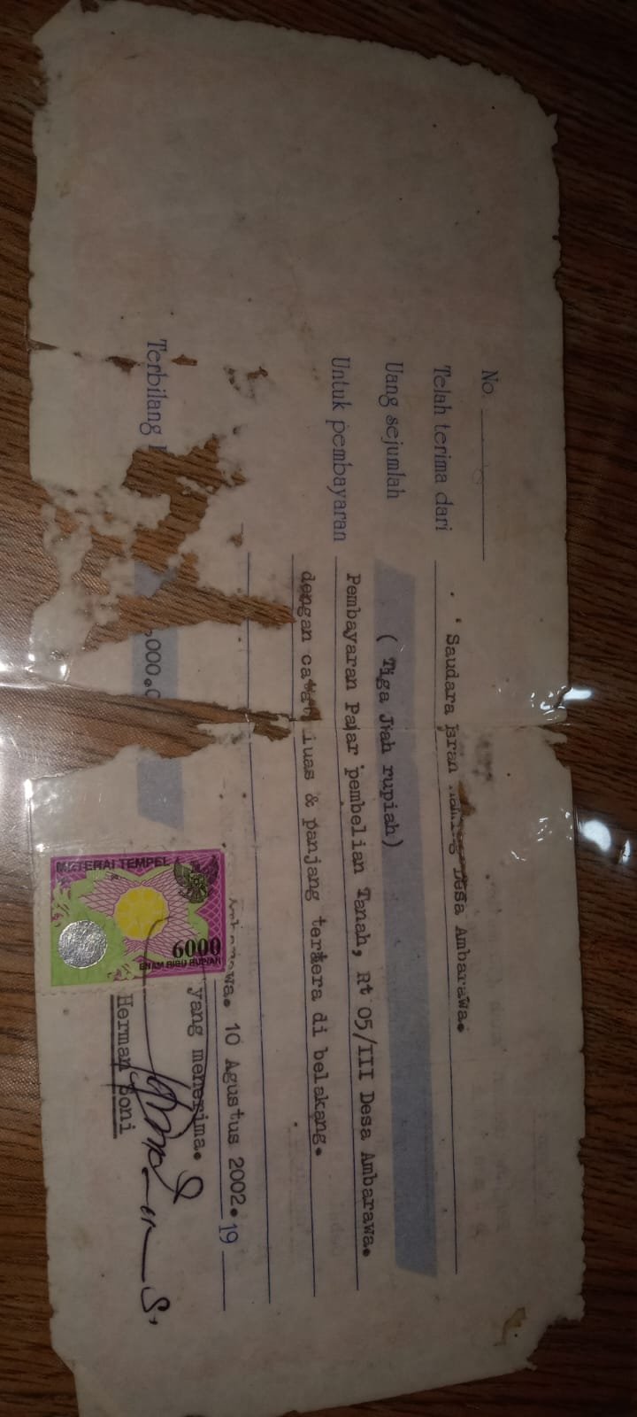 Kebun kelapa yang menjadi objek permasalahan telah saya beli pada tahun 2002 dari saudara HR. Saya memiliki bukti kwitansi pembayaran dan telah mengelola kebun tersebut selama kurang lebih 22 tahun.