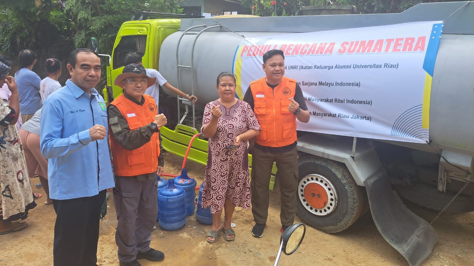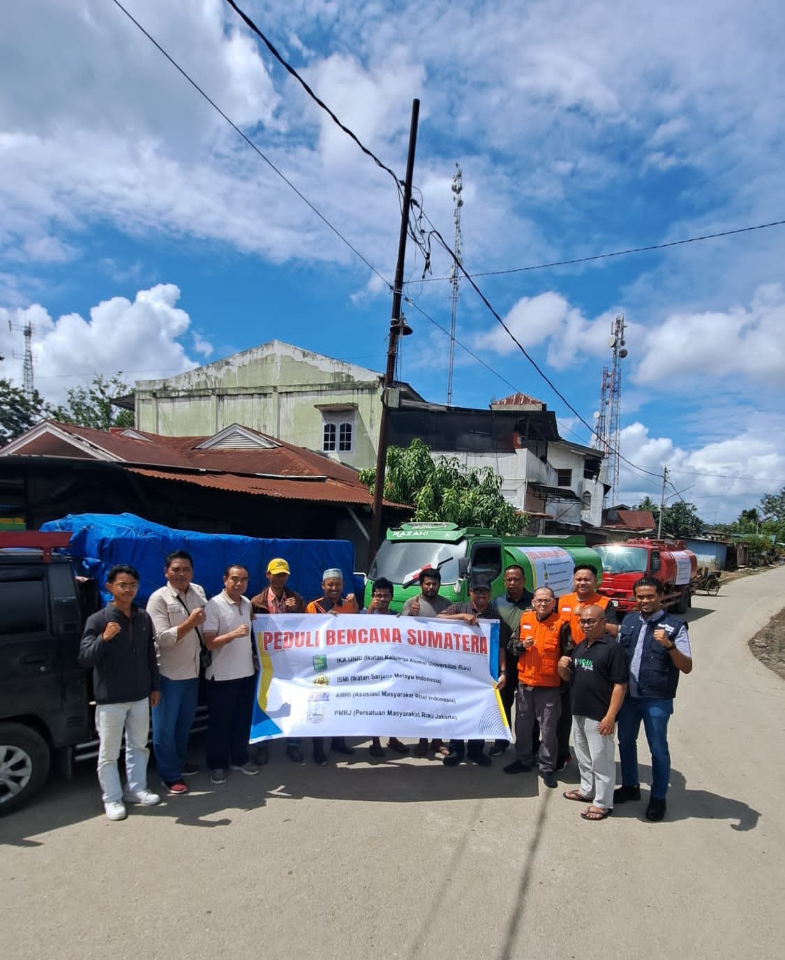 Bantuan berupa air bersih, beras dan sembako tersebut diberangkatkan ke lokasi pada Jumat 19 Desember 2025 dari Medan. Ketua IKA UNRI Pusat, Suhu Wan didampingi Ketua IKA UNRI Sumatera Utara, Mulyadi Simatupang, dan Yoffi Andinata dari PB ISMI, mengatakan bahwa pemberian bantuan ini adalah bentuk kepedulian, keikhlasan dan keprihatinan sehingga harus membantu saudara saudara yang terpapar banjir sejak 2 pekan lalu.