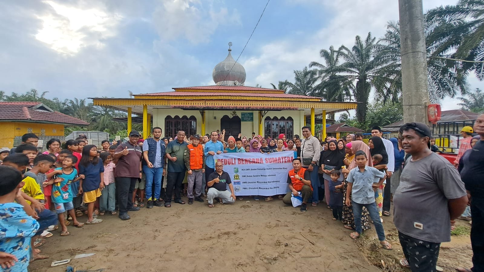 MEDAN MBS.Com. Sampai hari ke 16, tak habis habisnya berbagai pihak membantu para korban banjir di Sumatera Utara, Aceh dan Sumatera Barat. Kali ini kolaborasi Ikatan Keluarga Alumni Universitas Riau (IKA UNRI), Asosiasi Masyarakat Ritel Indonesia (AMRI), Persatuan Masyarkat Riau Jakarta (PMRJ) dan Pengurus Besar Ikatan Sarjana Melayu Indonesia (PB ISMI) memberikan bantuan kepada masyarakat terpapar banjir di Tanjung Pura, Pangkalan Berandan dan Besitang, Kabupaten Langkat, Provinsi Sumatera Utara.