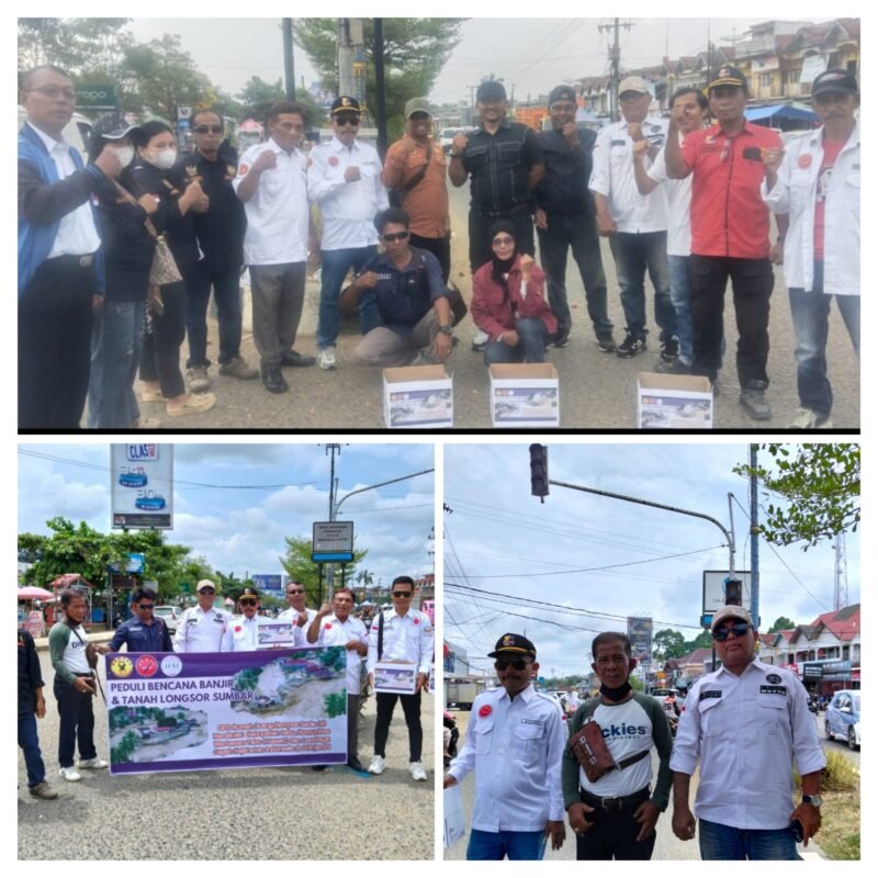 TEBO // MBS – DPD Rumah Juang Rampas setia 08 Berdaulat Kabupaten Tebo bersama komunitas wartawan Tebo (KAWAT) dan Lembaga Cegah Kejahatan Indonesia (LCKI) Jambi, hari ini turun ke jalan di titik lokasi Lampu Merah Simpang Jalan Sultan Thaha Kelurahan Wirotho Agung Kecamatan Rimbo Bujang, menggalang dana untuk peduli Banjir dan Tanah Longsor (Bansor) Sumatera Barat (Sumbar).