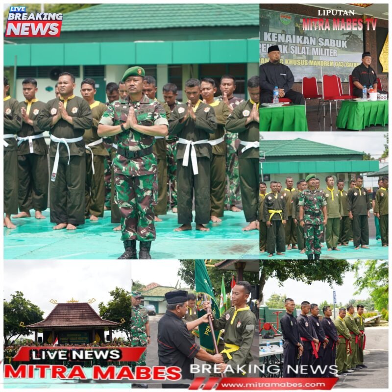 METRO MITRA MABES.COM – Sebanyak 120 prajurit jajaran Korem 043/Garuda Hitam (Gatam) menjalani Ujian Kenaikan Tingkat (UKT) Pencak Silat Militer (PSM) dari sabuk putih ke sabuk kuning. Kegiatan yang bertujuan memperkuat ketangkasan fisik dan mental tersebut dipusatkan di Lapangan Upacara Korem 043/Gatam, Metro, Jumat (9/1/2026).