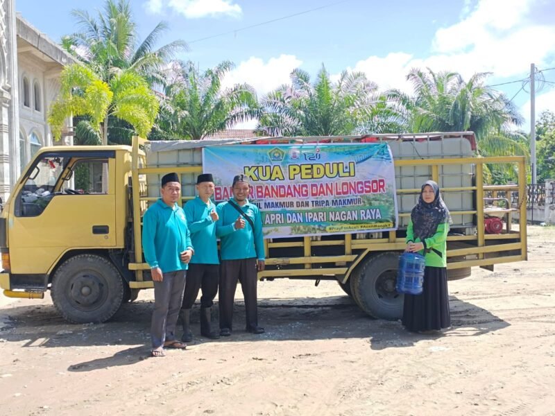 Suka Makmue- Mitra Mabes. Com” KUA Darul Makmur Salurkan bantuan air bersih kepada warga imbas pascabencana banjir d dua kecamatan yaitu kecamatan Darul Makmur yaitu desa Kuta Trieng,dan desa Lamie sedangkan di kecamatan Tripa Makmur desa Panton Pange, dan Desa Ujung Krueng ” Selasa 23 Desember 2025