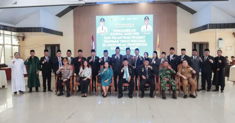 Dairi – Sumut, Mbs – Bupati Dairi Vickner Sinaga melantik 16 Pejabat Pimpinan Tinggi Pratama (PPTP) serta mengambil sumpah janji 10 PNS di lingkungan Pemerintah Kabupaten Dairi pada Selasa (4/11/2025) di Balai Budaya Sidikalang. Kegiatan tersebut turut dihadiri oleh Wakil Bupati Dairi Daniel Wahyu Sagala, Unsur Forkopimda dan Sekretaris Daerah Surung Charles Bantjin.