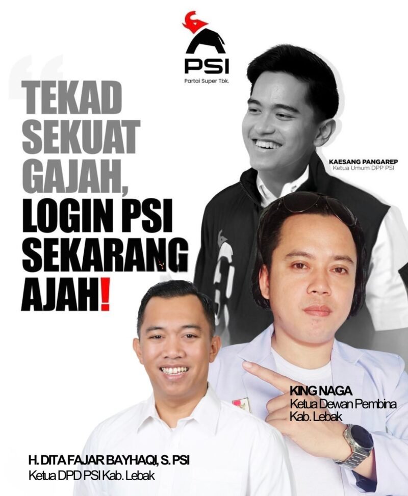 Lebak, Banten mitramabes.com — 1 Desember 2025,DPD Partai Solidaritas Indonesia (PSI) Kabupaten Lebak resmi menunjuk aktivis muda King Naga sebagai Ketua Dewan Pembina PSI Lebak. Keputusan yang diumumkan langsung oleh Ketua DPD PSI Lebak, H. Dita Fajar Bayhaqi, ini menjadi langkah penting partai dalam memperkuat struktur kepemimpinan serta memperluas jangkauan kerja-kerja politik di wilayah Lebak.