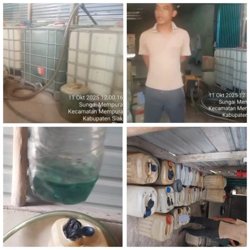 Mafia pengusaha minyak Ilegal jenis pertalite semakin meraja lela di kabupaten siak, Pantauan awak media dilapangan pada hari Sabtu (11/ 10/2025) terlihat ada aktifitas gudang minyak jenis pertalite di pinggir jalan lintas siak dayun desa Tambak Rejo, kecamatan Mempura, Kabupaten Siak, Provinsi Riau.