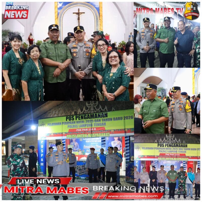 Lampung Tengah Mitra Mabes.Com – Perayaan Natal 2025 berlangsung dengan penuh sukacita dan khidmat di Kabupaten Lampung Tengah.
