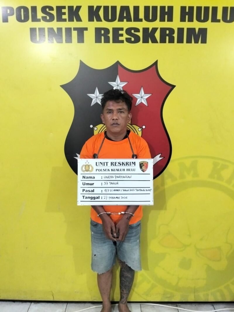 Pada hari Hari Jumat tanggal 27 Januari 2026 sekira pukul.11.25 Wib Polsek Kualuh Hulu mendapat laporan kejadian Tindak Pidana Pencurian dengan pemberatan tersebut, dan Atas Perintah Kapolsek Kualuh Hulu AKP CITRA YANI Br BARUS, SH, M.H. memerintahkan unit reskrim melakukan cek TKP yang dipimpin Kanit Reskrim IPDA RAMADHAN HILAL, S.E.,S.H, dan sesampainya di TKP tim melihat kerumunan masyarakat yang sudah mengamankan 1(satu) orang tersangka dan selanjutnya tim melakukan interogasi dan mengaku bernama HANDRA PANDIANGAN dan ianya mengakui perbuatannya telah melakukan Pencurian tas dari mobil AGYA warna merah BK 1660 EJ milik pelapor/korban bersama 1(satu) orang temannya yang berhasil melarikan diri bernama SALOMO HUTAGALUNG, Lk, 39 Tahun, Kristen, Wiraswasta, Parluasan Kelurahan Suka Dame Kecamatan Siantar Utara Kotamadya Siantar dan dari tersangka HANDRA PANDIANGAN diamankan barang bukti alat kejahatan berupa 1(satu) buah obeng dan 1(satu) unit sepeda motor Honda Vario warna merah tanpa plat. Selanjutnya tim melakukan pengejaran dan pencarian 1(satu) pelaku/tersangka lainnya namun tidak berhasil menemukannya.