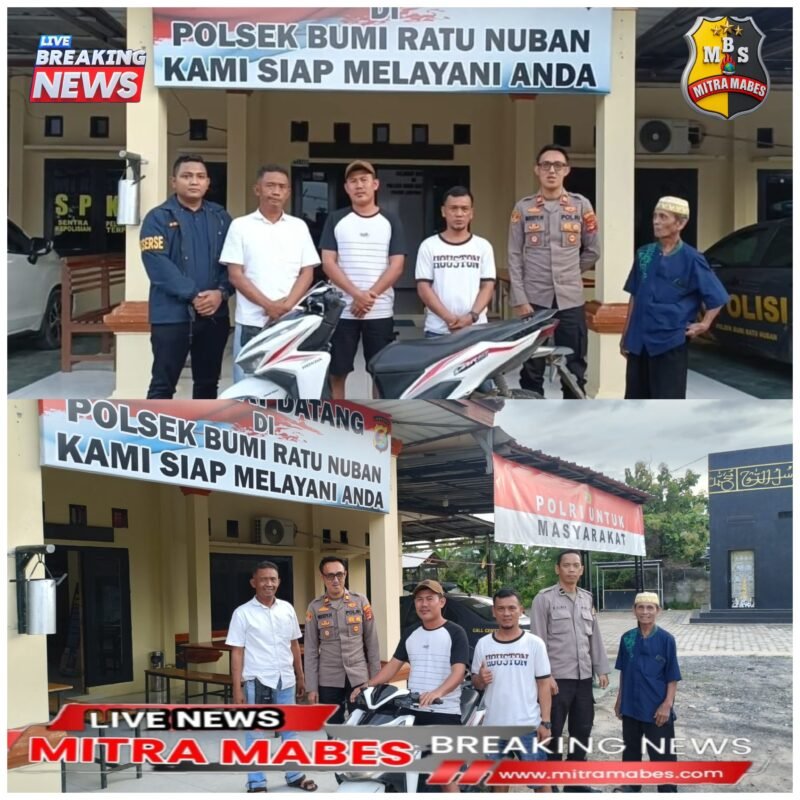 Penyerahan barang bukti tersebut dilakukan setelah Kapolsek Bumi Ratu Nuban, Iptu Meidy Hariyanto, S.H., M.H., menghubungi korban AS (60) untuk datang ke Mapolsek Bumi Ratu Nuban pada Selasa (16/12/25), dengan membawa kelengkapan surat-surat kendaraan.