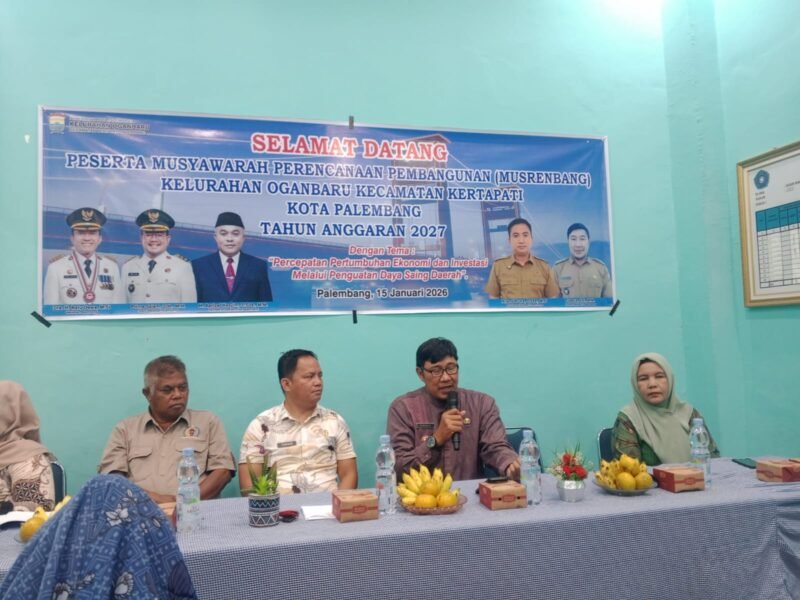 MITRA MABES.COM//Palembang — Musyawarah Perencanaan Pembangunan (Musrenbang) Kelurahan Ogan Baru, Kecamatan Kertapati, Kota Palembang kembali digelar sebagai forum strategis penentu arah pembangunan berbasis aspirasi masyarakat. Kegiatan ini dibuka langsung oleh Lurah Ogan Baru, Firdaus, SE, dan dihadiri unsur kecamatan, RT, tokoh masyarakat, serta perwakilan warga,Kamis(15/1/2026).