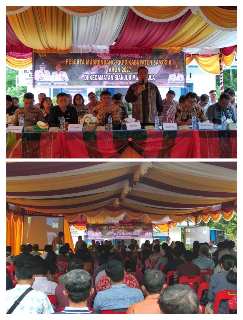 Samosir- Sumut, Mbs – Pemerintah Kabupaten Samosir melalui Bapperida menggelar Musyarawah Perencanaan Pembangunan (Musrenbang) Rencana Kerja Pemerintah Daerah (RKPD) Tahun 2027 Tingkat Kecamatan Se-Kabupaten Samosir, secara resmi dibuka Bupati Samosir yang diwakili Asisten Perekonomian dan Pembangunan Hotraja Sitanggang, bertempat di halaman Kantor Camat Sianjur Mulamula, Jumat (30/01).
