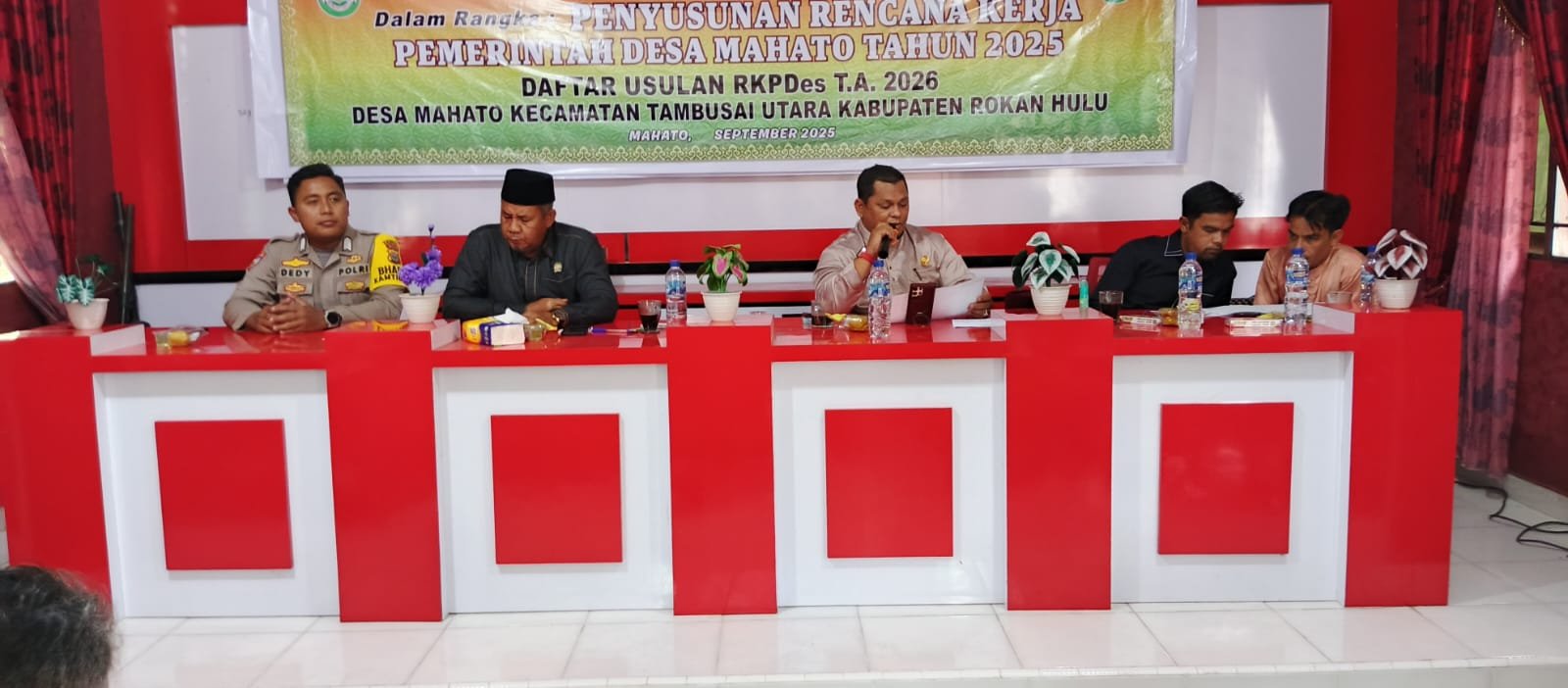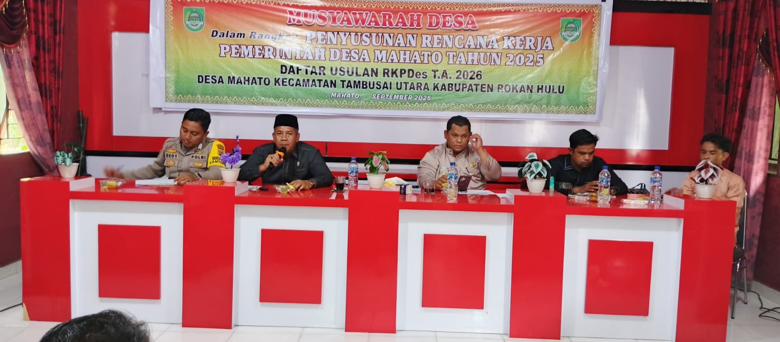 Mahato Rohul MBS Selasa, 7 Oktober 2025, Badan Permusyawaratan Desa (BPD) Desa mahato kecamatan Tambusai Utara kabupaten Rokan hulu Riau,menyelenggarakan Musyawarah Desa (Musdes) Sosialisasi Penyusunan Rencana Kerja Pemerintah Desa (RKPDes) Tahun 2026.