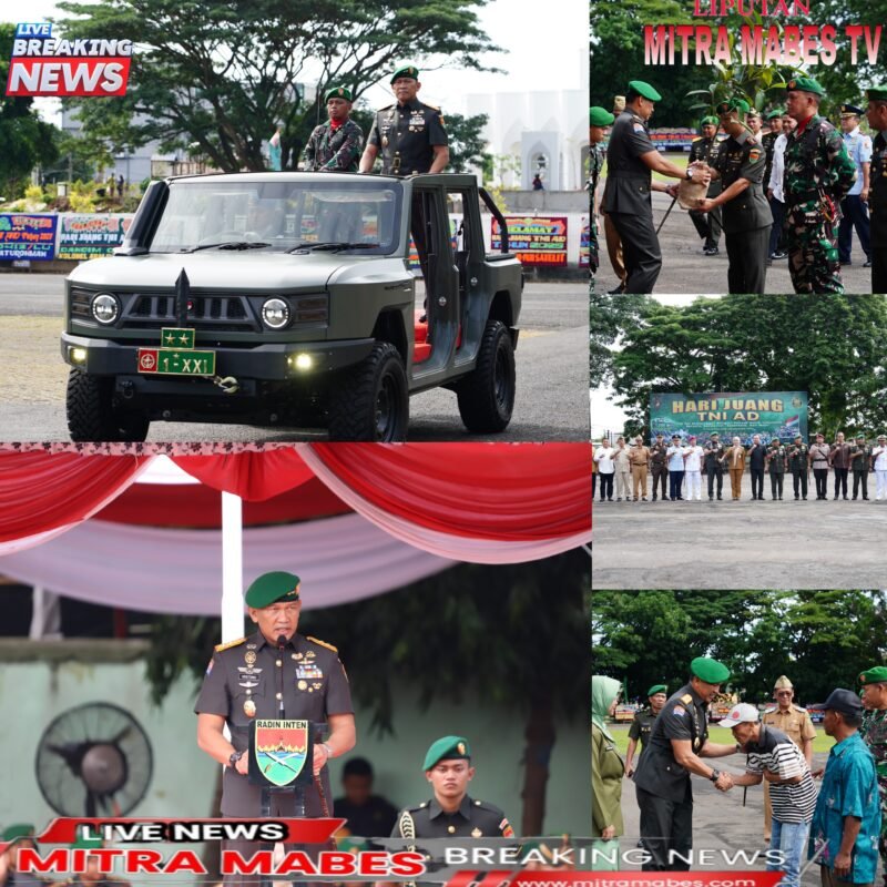 Bandar Lampung Mitra Mabes.Com – Panglima Kodam XXI/Radin Inten, Mayjen TNI Kristomei Sianturi, S.Sos., bertindak selaku Inspektur Upacara pada peringatan Hari Juang TNI Angkatan Darat Tahun 2025 yang digelar di Lapangan Saburai, Kelurahan Enggal, Kecamatan Tanjung Karang Pusat, Kota Bandar Lampung, Senin (15/12/2025).