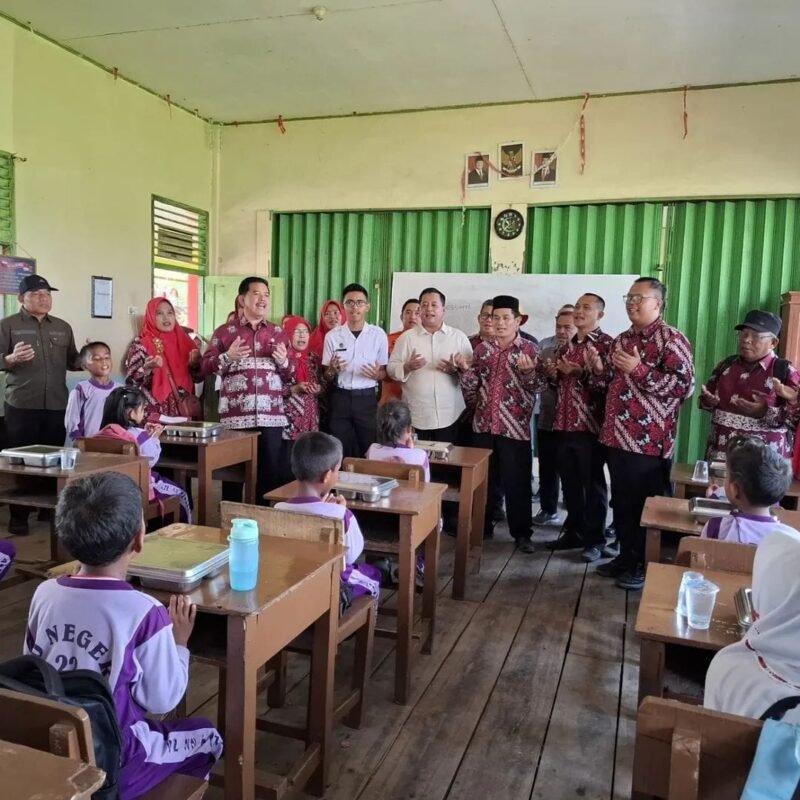 TANJUNG LAGO -mitramabes.com. Bupati Banyuasin Dr. H. Askolani, SH., MH melakukan peninjauan langsung terhadap pelaksanaan Program Makanan Bergizi Gratis (MBG) di sekolah SD Negeri 22 Tanjung Lago Sebagai Bentuk kepedulian Pendidikan dan Kesehatan terhadap Masyarakat yang terdampak kebakaran, Kamis (9/10/2025).