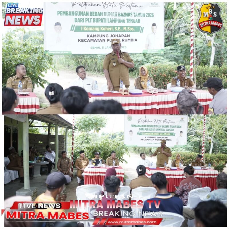 LAMPUNG TENGAH MITRA MABES.COM – (KomalaNews.co) – Pelaksana Tugas (Plt.) Bupati Lampung Tengah, I Komang Koheri, secara resmi membuka sekaligus melakukan peletakan batu pertama Program Rumah Tidak Layak Huni (RTLH) yang dilaksanakan oleh Badan Amil Zakat Nasional (Baznas) Kabupaten Lampung Tengah. Kegiatan tersebut berlangsung di Kampung Joharan, Kecamatan Putra Rumbia, pada Senin (05/01/2026).