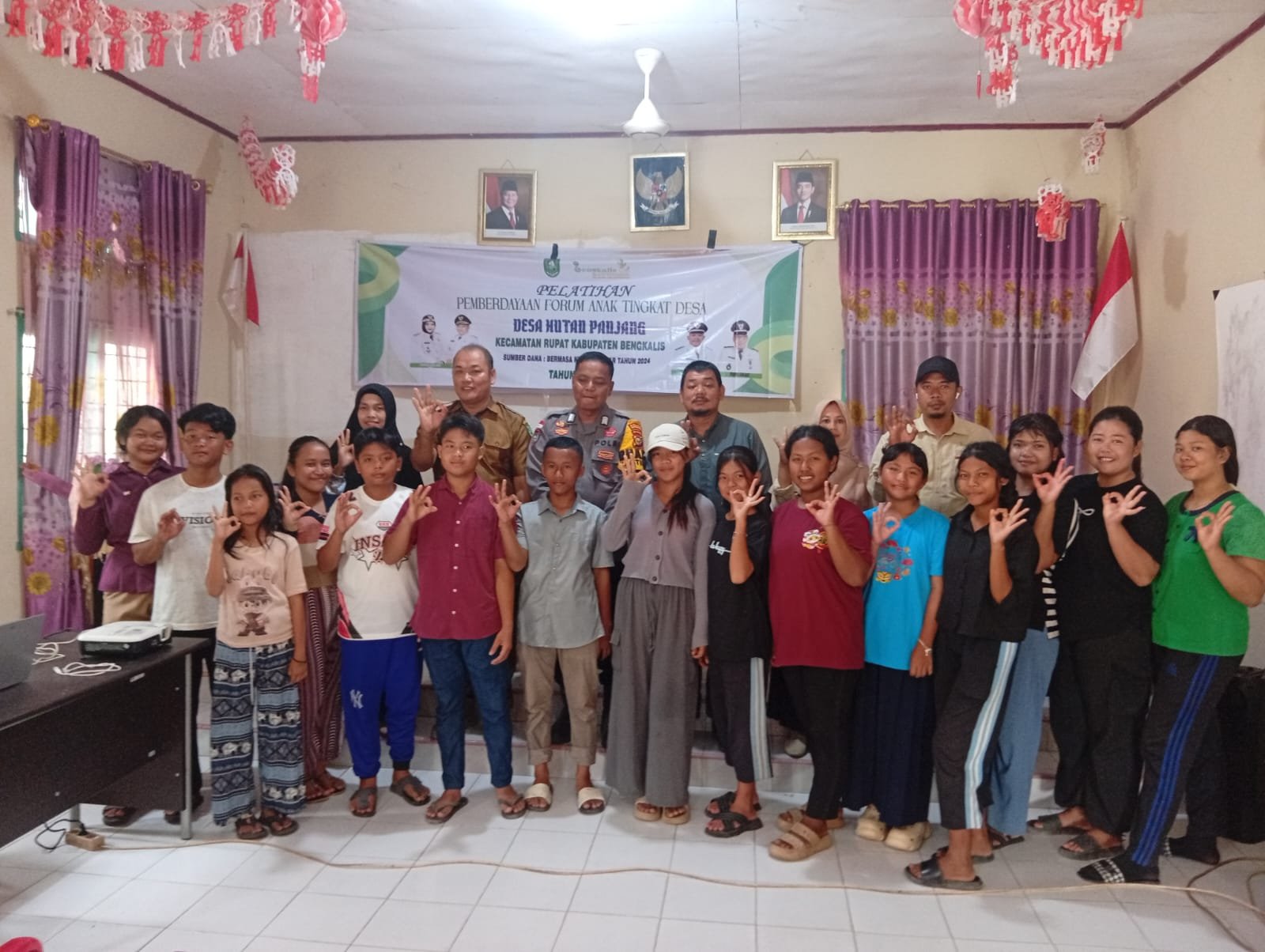 Rupat Mitra Mabes.com Pemerintah Desa (Pemdes) Hutan Panjang kembali menunjukkan komitmennya dalam membangun sumber daya manusia sejak usia dini dengan menggelar Pelatihan Pemberdayaan Forum Anak Tingkat Desa. Kegiatan yang diselenggarakan pada Senin, 24 November 2025 ini dipimpin langsung oleh Bendahara Desa Hutan Panjang, Aceng, S.Sos, yang membuka acara sekaligus memberikan pengarahan mengenai pentingnya peran anak dalam pembangunan desa.
