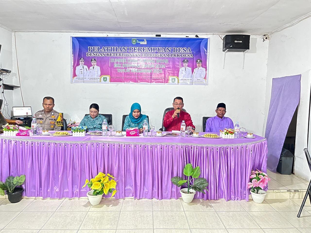 Acara diawali dengan kata sambutan dari Kepala Desa Tanjung Medang, Saipul, yang menyampaikan pentingnya peningkatan kapasitas dan peran aktif perempuan dalam pembangunan desa melalui program-program PKK. Ia berharap pelatihan ini dapat menambah wawasan serta mendorong kemandirian kaum perempuan di tingkat desa.