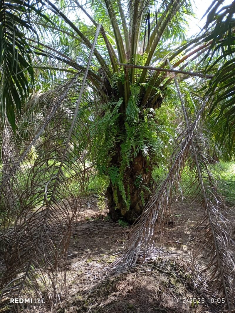 Sergai. Mitra mabes, – Banyaknya pelepah pohon kelapa sawit di Kebun Tanah Raja terlihat yang sudah tua hingga mengering masih menempel dan bergelantungan di pohon kelapa sawit diduga tidak terawat dan sudah lama tidak di tunas, seperti yang terlihat oleh awak Media ketika berkunjung di Afdeling IV, pada hari Kamis (11/12/2025).