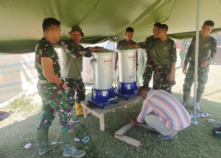 13 Januari 2025 Danramil 05 Linge Lettu Inf Mukhlis beserta Babinsa 05 Linge dan dibantu Oleh personil Yon TP 854/DK melaksanakan pemasangan 1 Set Pembersih Air Fumizu di pengungsian desa Delung Sekinel Kecamatan Linge Kabupaten Aceh Tengah.