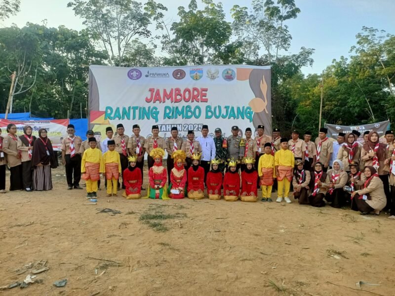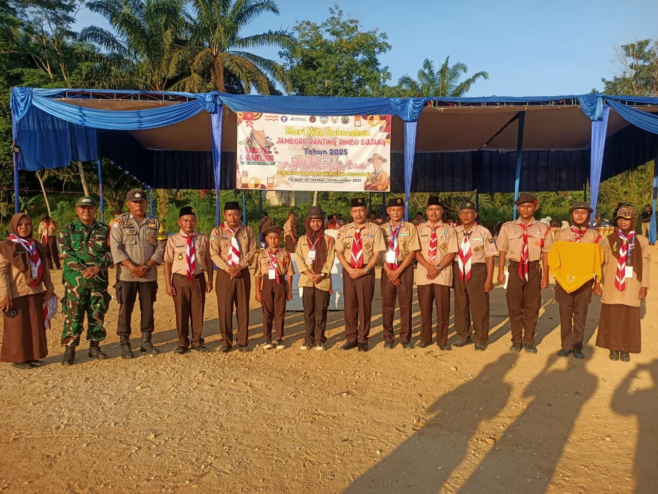 TEBO || MBS – Pembukaan pelaksanaan Jambore Ranting (Jamran) Tingkat Kecamatan Rimbo Bujang yang di gelar pada hari kamis 30 Oktober 2025 di lapangan Dadi Asri Desa Puwodadi Kecamatan Rimbo Bujang Kabupaten Tebo, Pada acara pembukaan berlangsung meriah dengan dihadiri KA Kwarcab Tebo Nazar Evendi, SE, M.SI, yang di Wakili Sekertaris Kwarcab Tebo Zainuddin Abbas, S.Sos, berbagai unsur Gerakan Pramuka dan Forkopimcam,Ka Kwaran Rimbo Bujang Sriwoto, S.Pd, beserta Jajaran pengurus, Danramil M. Anas Kapten CKM, yang diwakili, Sertu Seprizal Saputra, Kapolsek Rimbo Bujang Iptu Ida Bagus Made Oka, SH yang di Wakili Bripka Dedi Naibaho, Pj Kepala Desa Purwo Dadi Sartim, S.Pd, Kepada Puskesmas Tegal Arum Ana Sari Kapus Tegal Arum yang diwakili Para Pembina, Pembantu Pembina, Sangga Kerja, serta adik-adik peserta Jambore Ranting Rimbo Bujang.