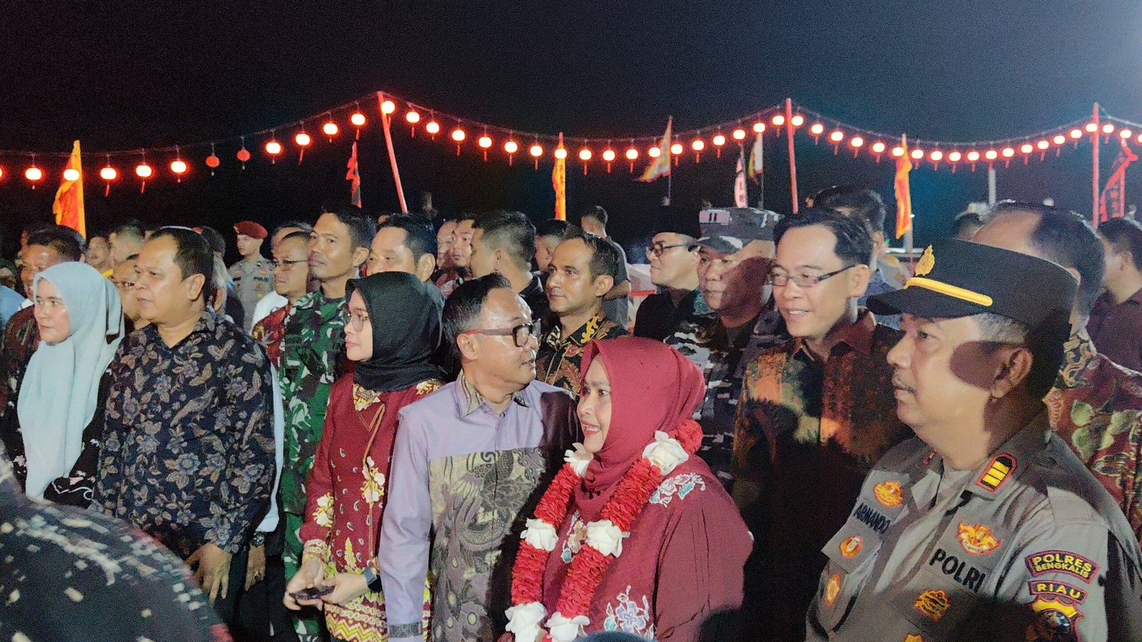 Acara pembukaan tersebut dihadiri langsung oleh Bupati Bengkalis, Kasmarni, bersama rombongan pejabat Pemerintah Kabupaten Bengkalis, antara lain Sekda Kabupaten Bengkalis dr. Ersan Saputra T.H., Kaban Kesbangpol Dr. H. Suwarto, S.Pd., M.Pd., Kadis Kominfo H. Agus Sofyan, S.IP., M.Si., Kadis Pariwisata Edi Sakura, S.Pd., M.Pd., Kasatpol PP Muhammad Adi Pranoto, Kadis Perhubungan Ardiansyah, S.T., M.T., Kalaksa BPBD Drs. Sufandi, M.P., Kabag Kesra H. Herman Nur, S.Pd., Kabag Umum Kevin Rafizariandi, S.STP., serta Kabag Prokopim Syafrizal, S.Sos.