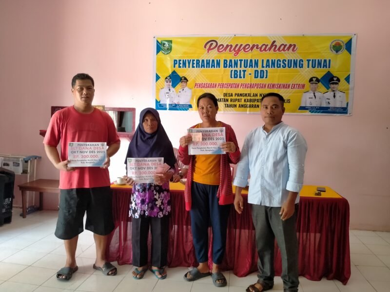 Rupat Mitra Mabes.com Pemerintah Desa Pangkalan Nyirih kembali menyalurkan Bantuan Langsung Tunai Dana Desa (BLT-DD) tahap 4 tahun 2025 kepada 30 keluarga penerima manfaat (KPM). Kegiatan penyerahan berlangsung pada Jumat (14/11) di ruang rapat Kantor Desa, sebagai bagian dari upaya pemerintah desa dalam menekan angka kemiskinan ekstrem sesuai amanat Permendes Nomor 2 Tahun 2025.