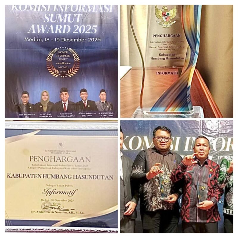 Pemerintah Kabupaten Humbang Hasundutan kembali raih penghargaan Keterbukaan Informasi Publik (KIP) Tahun 2025 dari Komisi Informasi Provinsi Sumatera Utara. Penghargaan ini diberikan Komisi Informasi Kepada Dr. Oloan P. Nababan, SH, MH yang diwakili Sekretaris Daerah Chiristison Rudianto Marbun pada penganugerahan Keterbukaan Informasi Award Tahun 2025 dilaksanakan di Kantor Komisi Informasi Provinsi Sumatera Utara di Medan, Kamis 18 Desember 2025.
