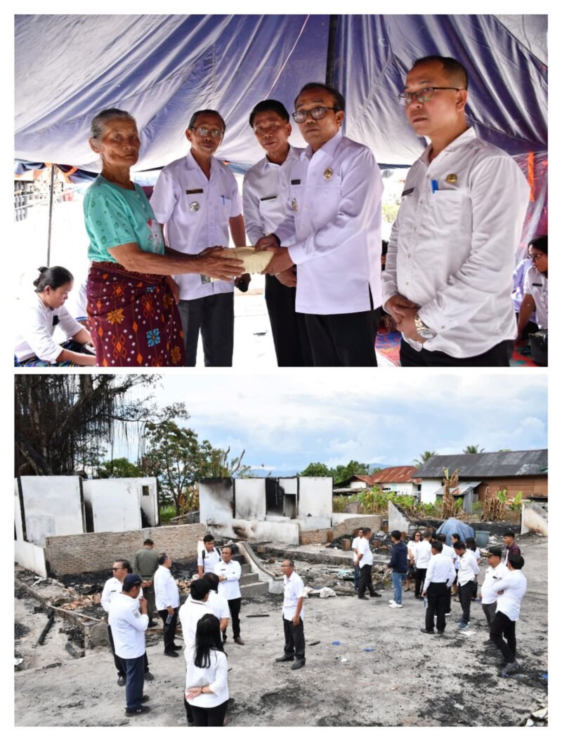 Samosir- Sumut Mbs – Korban kebakaran Huta Sidaji kembali mendapat perhatian dari Pemerintah Kabupaten Samosir. Setelah pemberian bantuan baperstock (bantuan pangan dan sandang) dan pendirian tenda darurat pada tanggal 29 September lalu (hari pertama kejadian), Wakil Bupati Samosir Ariston Tua Sidauruk mengunjungi korban dan menyerahkan bantuan dari Pemkab Samosir sejumlah uang tunai dan pengganti dokumen Administrasi Kependudukan (Adminduk) yang hangus terbakar kepada 8 KK korban kebakaran, 08/10.