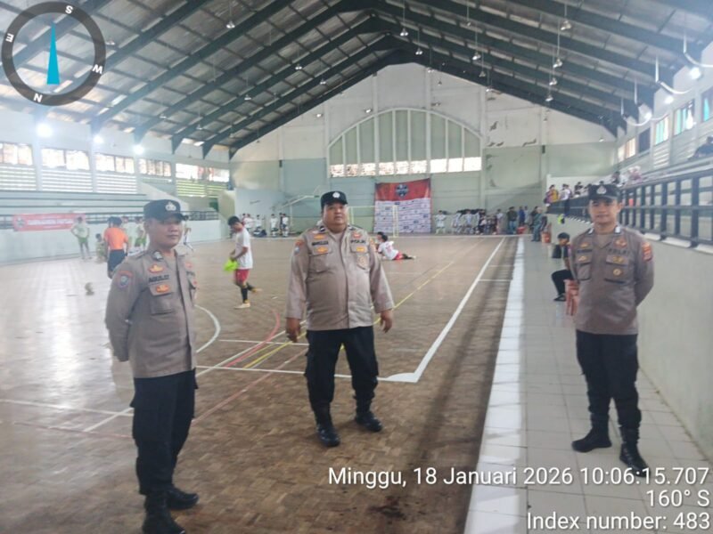 “Peeaonil Polsek Rangkasbitung berikan himbauan kamtibmas kepada para peserta futsal di Gor Ona Rangkasbitung.