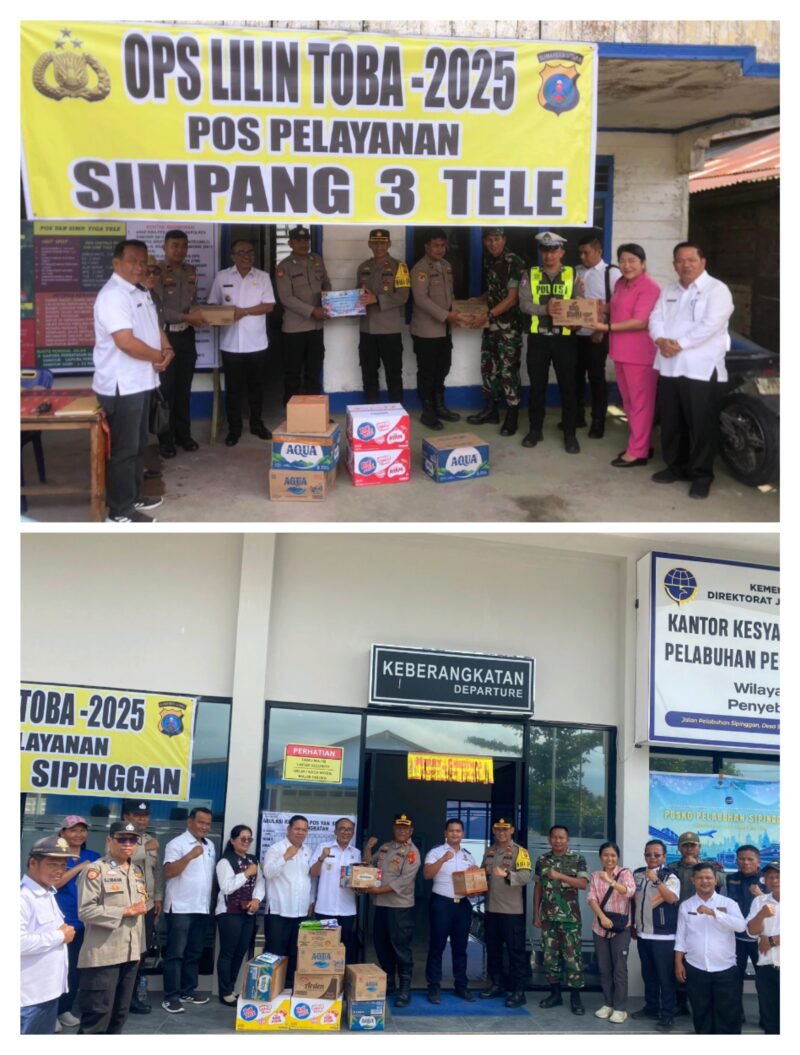 Kedua tim memulai monitoring dari Pos Pelayanan Simpang Empat Pangururan. Pada kesempatan tersebut, Bupati Samosir menyerahkan bingkisan berupa makanan ringan dan minuman kepada petugas pos sebagai bentuk apresiasi atas dedikasi mereka dalam menjalankan tugas.