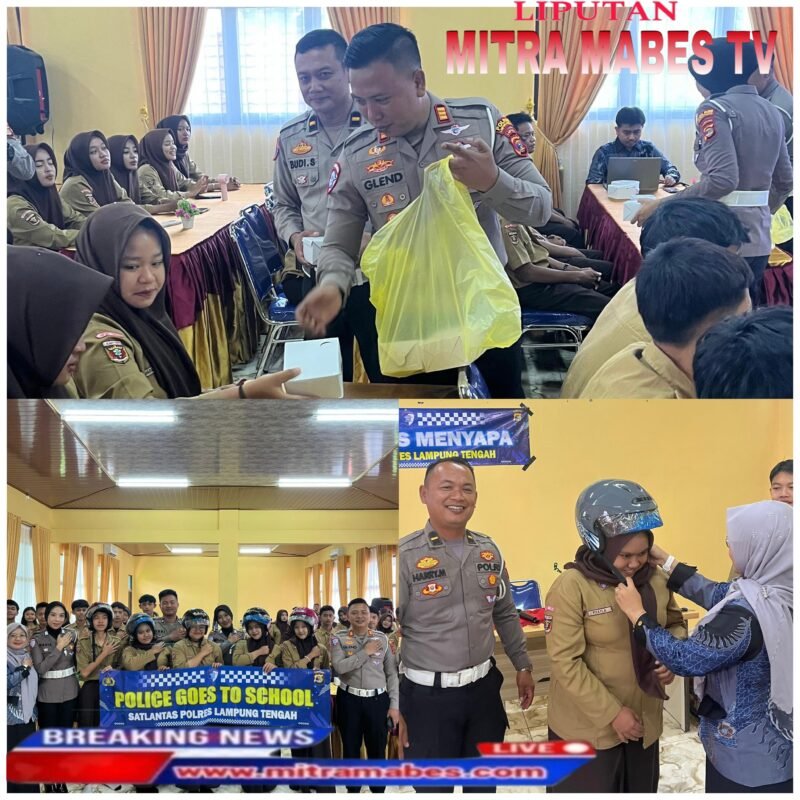 Lampung Tengah Mitra Mabes.Com – Dalam rangka meningkatkan kesadaran dan kedisiplinan para pelajar dalam berlalu lintas, Satlantas Polres Lampung Tengah kembali menggelar kegiatan “Police Goes To School”, yang dikemas dalam program “Polantas Menyapa”, bertempat di SMA Negeri 1 Seputih Agung, Jumat (3/10/25).