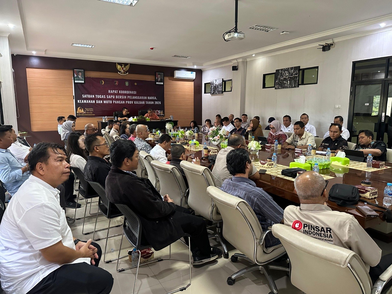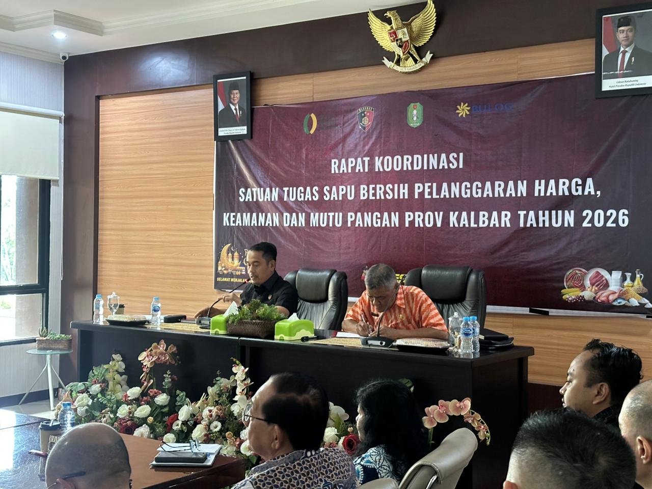 Ditreskrimsus Polda Kalimantan Barat menyelenggarakan Rapat Koordinasi (Rakorda) Satgas Saber Pelanggaran Harga, Keamanan dan Mutu Pangan Tahun 2026 wilayah Kalbar di Ruang Rapat Utama Ditreskrimsus Polda Kalbar, Kamis (5/2).