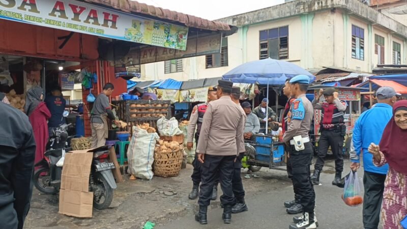 Puluhan personel diterjunkan di kawasan pusat perbelanjaan, pasar tradisional, dan titik-titik penjualan daging meugang untuk memastikan aktivitas masyarakat berlangsung aman, tertib, dan lancar.