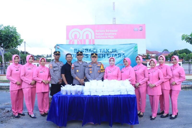 Dalam rangka menyemarakkan bulan suci ramadhan 1447 Hijriah, Kepolisian Resor Aceh Utara melaksanakan kegiatan pembagian takjil kepada masyarakat didepan Mako Polres setempat. Kamis, (26/2/2026) sore.