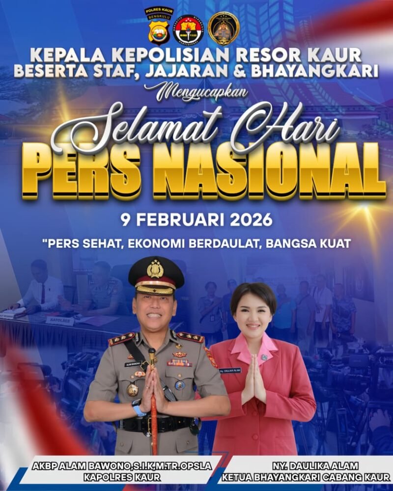 KAUR BENGKULU, MBS.com– Kepala kepolisian resor Kaur beserta staf jajaran dan Bhayangkari mengucapkan, selamat hari Pers Nasional tahun 2026.