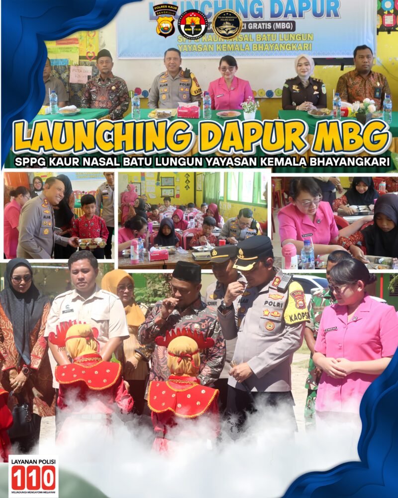 KAUR BENGKULU, MBS.com– Polres Kaur melaksanakan kegiatan Launching Satuan Pelayanan Pemenuhan Gizi (SPPG) Program Makan Bergizi Gratis (MBG) Polri sekira pukul 09.30 WIB, bertempat di SDN 34 Kaur Desa Batu Lungun Kecamatan Nasal, Kabupaten Kaur, Kamis (5/2/2026).