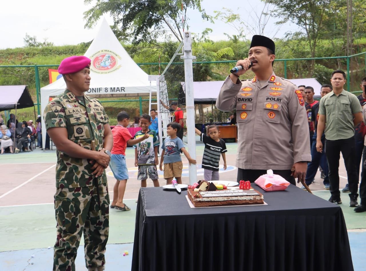 Dalam momen yang penuh keakraban tersebut, Kapolres Langkat memberikan ucapan selamat kepada seluruh prajurit Batalyon Infantri 8 Marinir Tangkahan Lagan Pangkalan Brandan.