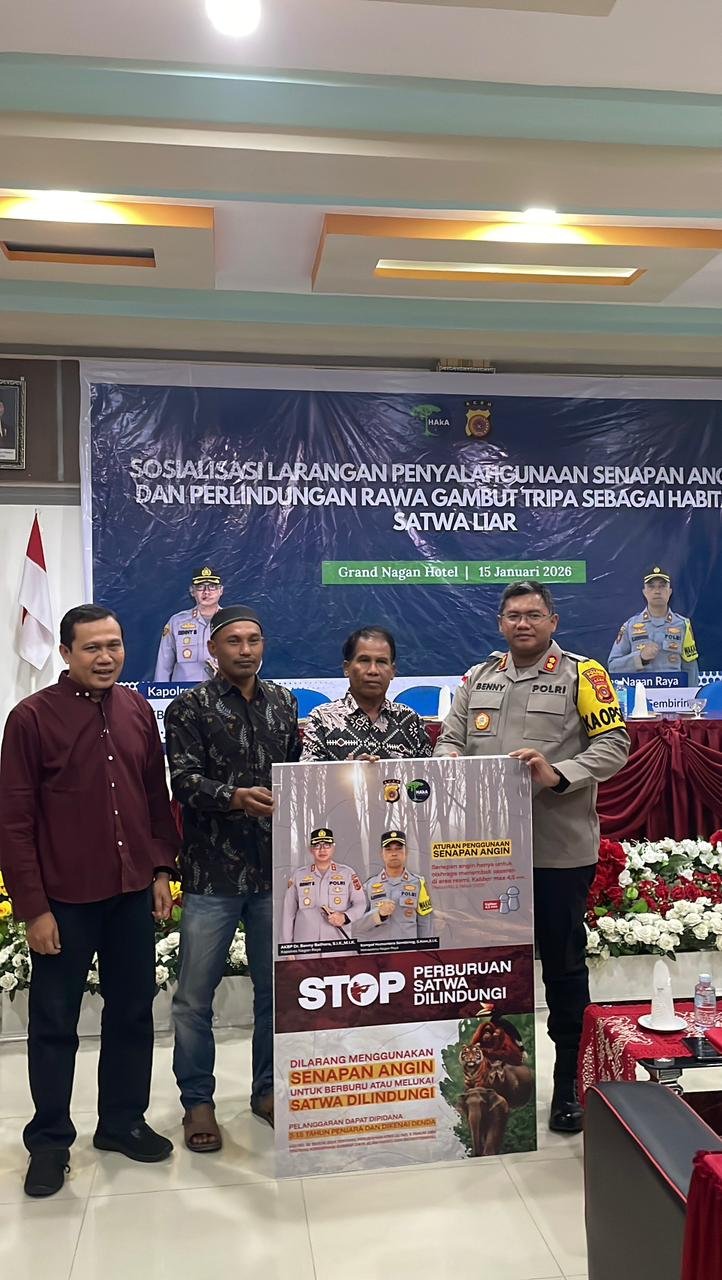 Suka Makmue-Mitramabes.com ” Polres Nagan Raya menggelar kegiatan Sosialisasi Larangan Penyalahgunaan Senapan Angin serta Perlindungan Rawa Gambut Tripa sebagai habitat satwa liar, bertempat di Aula Grand Nagan Hotel, Desa Simpang Peut, Kecamatan Kuala, Kabupaten Nagan Raya, Kamis (15/1/2026).